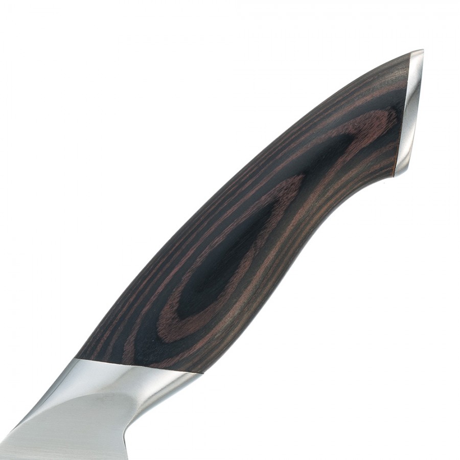 Нож для стейка OKROSHKA ТРЮФЕЛЬ - удобен для подачи и нарезки мясных блюд. Длина лезвия: 11,6 см Серия ТРЮФЕЛЬ — это сочетание утонченного внешнего вида и повседневного комфорта. В этих ножах продуман каждый штрих: сбалансированный вес, теплая текстура древесины Пакка и острое лезвие из высококачественной стали 9Cr18MoV. Пакка — композитный материал на основе древесины, пропитанной специальными смолами. В отличие от обычного дерева, Пакка устойчив к влаге: не впитывает воду, материал не расширяется и не сжимается при изменениях влажности. Эргономичная форма ручки и надежная сталь делают процесс готовки не только удобным, но и эстетически приятным. Эта коллекция создана для тех, кто ценит детали и выбирает инструменты, подчеркивающие стиль и качество кухни.