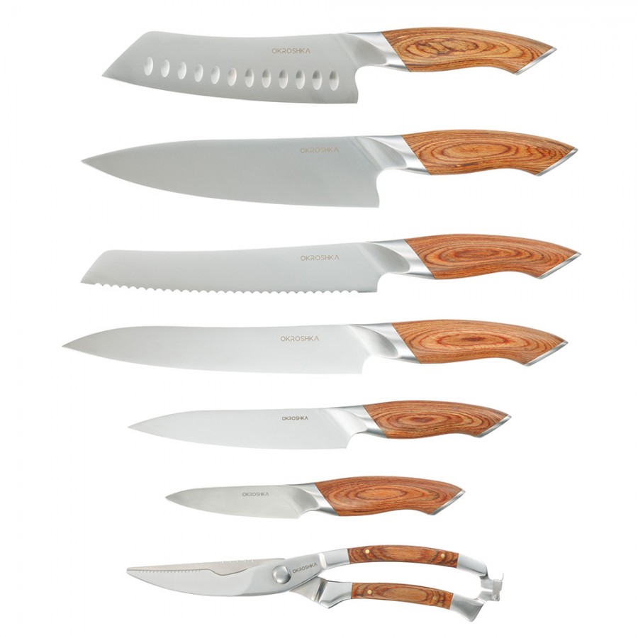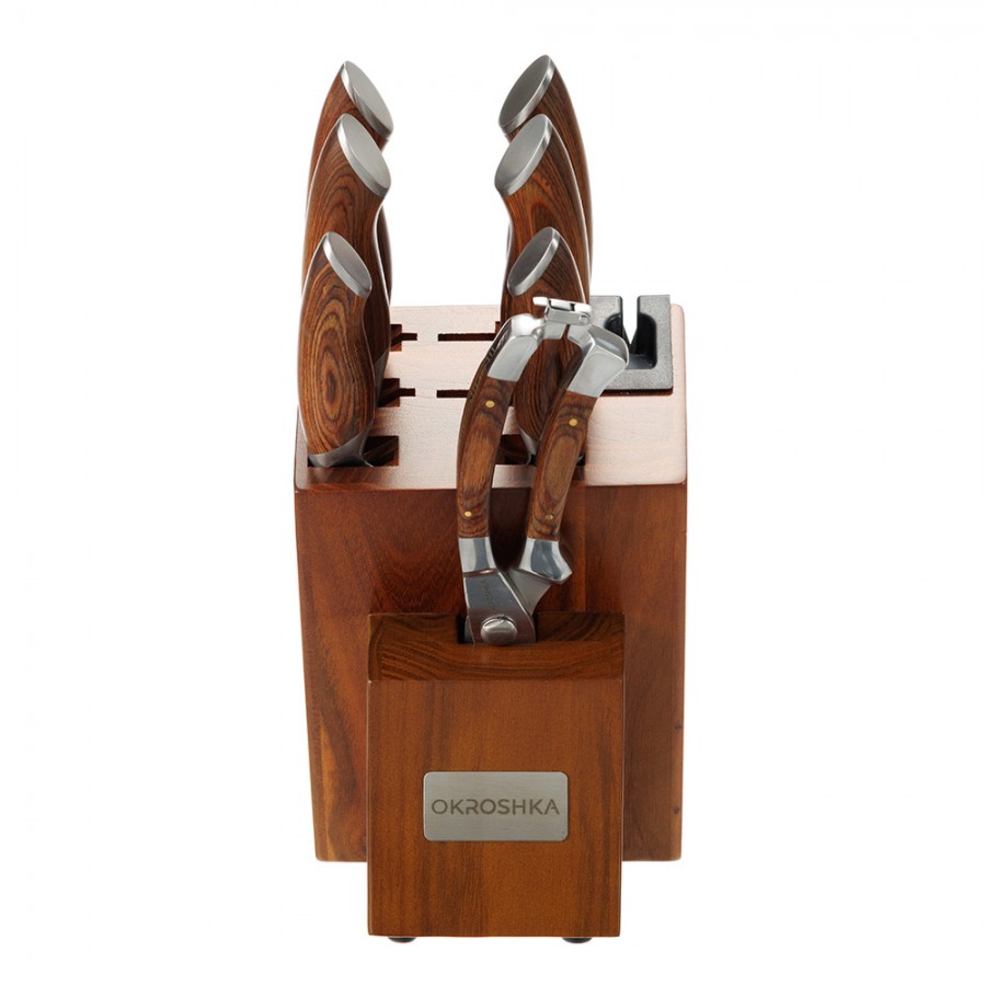 Набор кухонных ножей OKROSHKA ТРЮФЕЛЬ в подставке, 6 ножей, ножницы