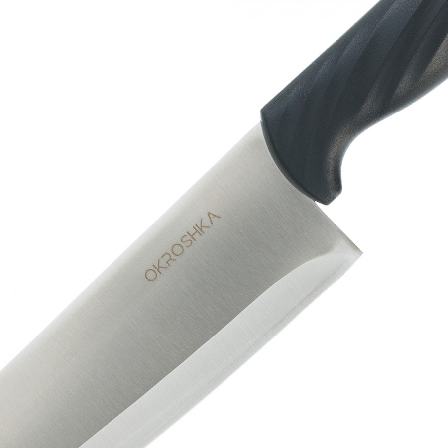 Нож поварской OKROSHKA КРУТОН - идеален для нарезки, шинковки и рубки продуктов. Длина лезвия: 19,3 см Серия КРУТОН — это простые и удобные ножи на каждый день, созданные для практичной и комфортной готовки. Надежные материалы, простой уход и комфортное использование — все, что нужно под рукой. Лезвия выполнены из высококачественной нержавеющей стали 5Cr15MoV, которая обеспечивает долговечность и сохраняет остроту даже при активном использовании. Эргономичные ручки гарантируют удобный захват и безопасность. КРУТОН объединяет простоту и надежность, превращая каждое приготовление в легкий и приятный процесс.