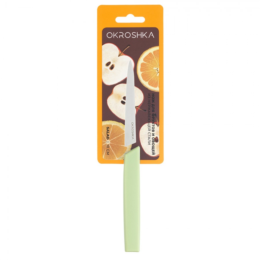 Нож для фруктов и овощей OKROSHKA САЛАТ, лезвие 10 см, зеленая ручка
