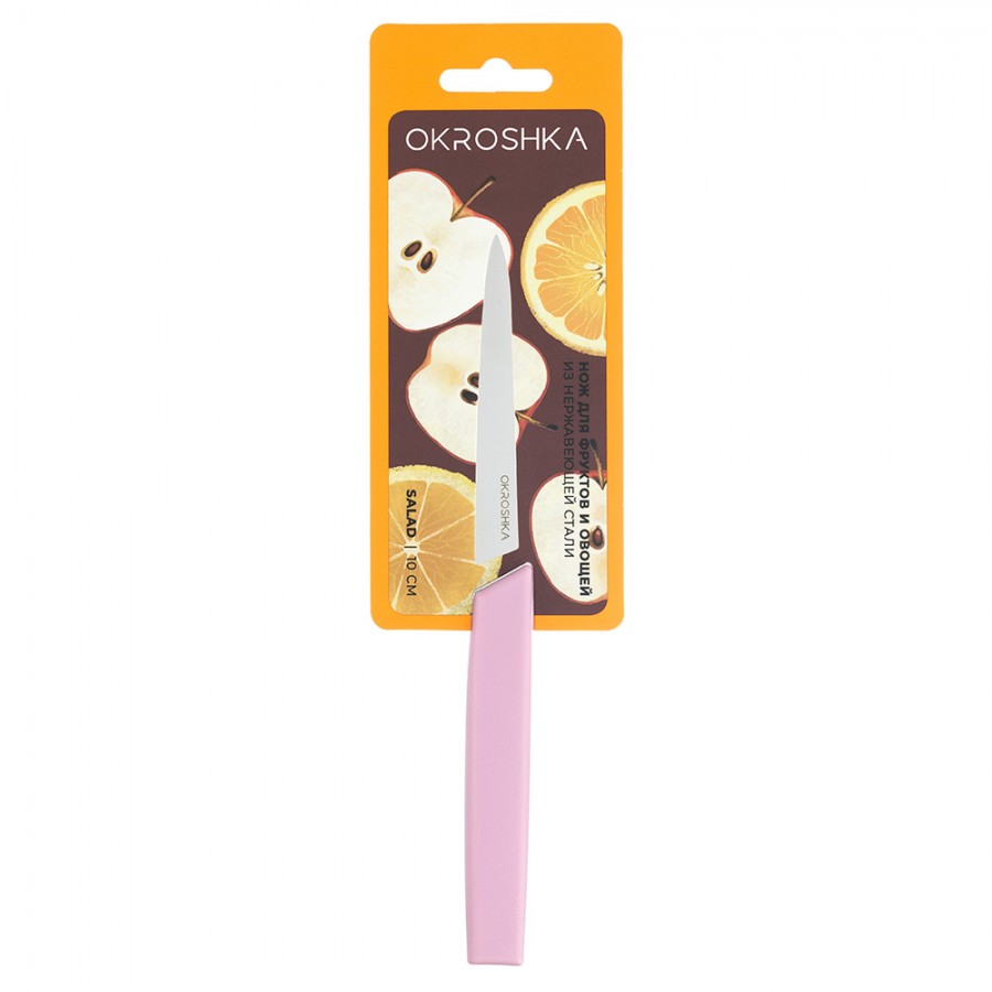 Нож для фруктов и овощей OKROSHKA САЛАТ, лезвие 10 см, розовая ручка