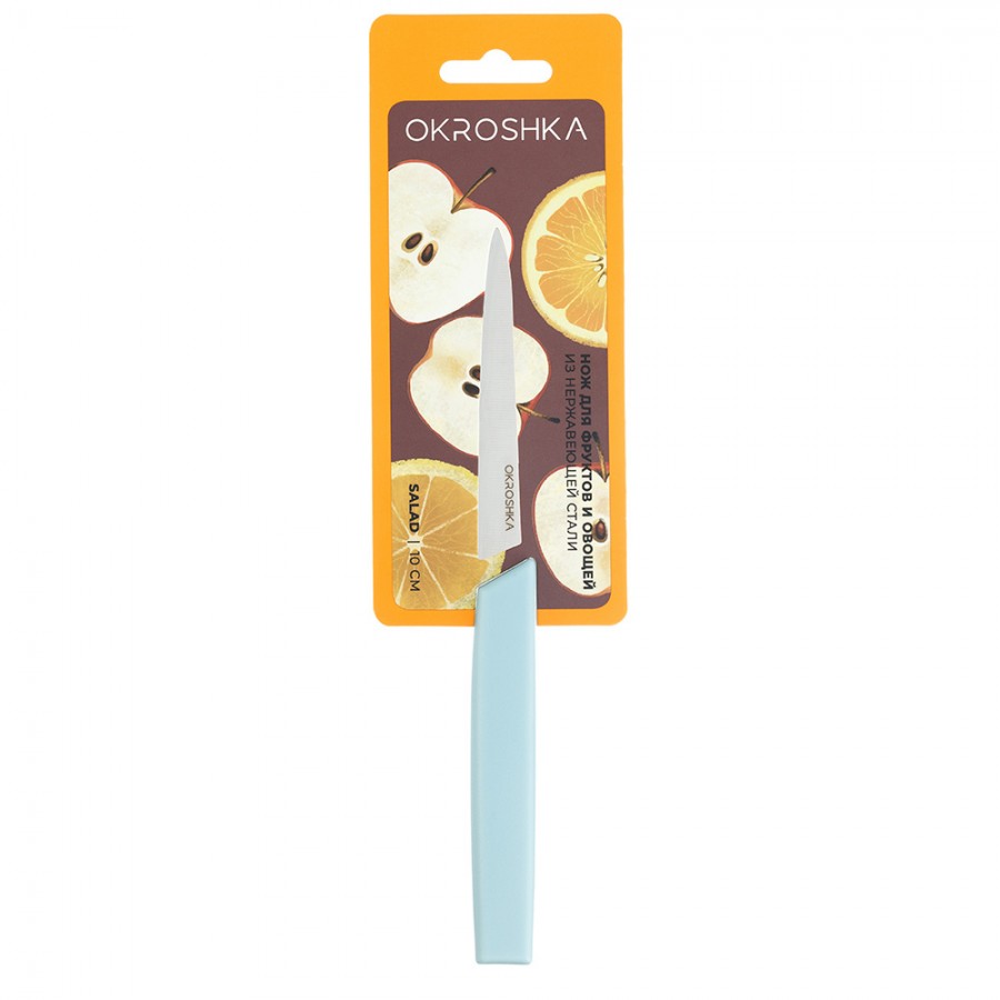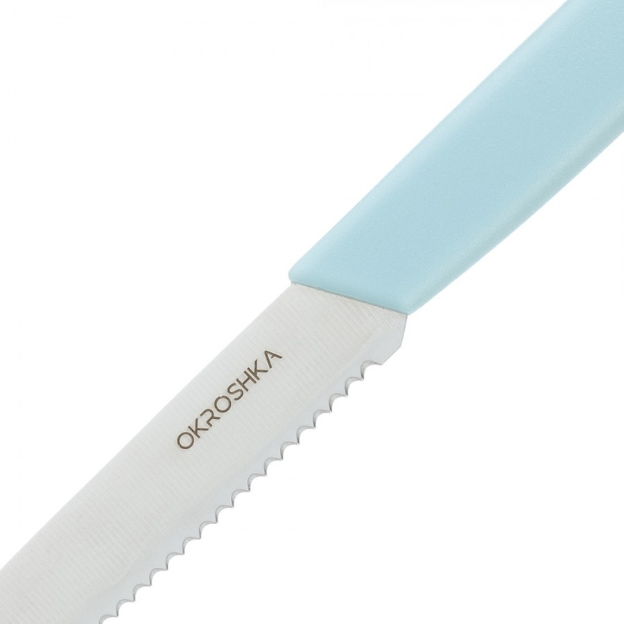 Нож для фруктов и овощей OKROSHKA САЛАТ, лезвие 10 см, с серрейторной заточкой, голубая ручка