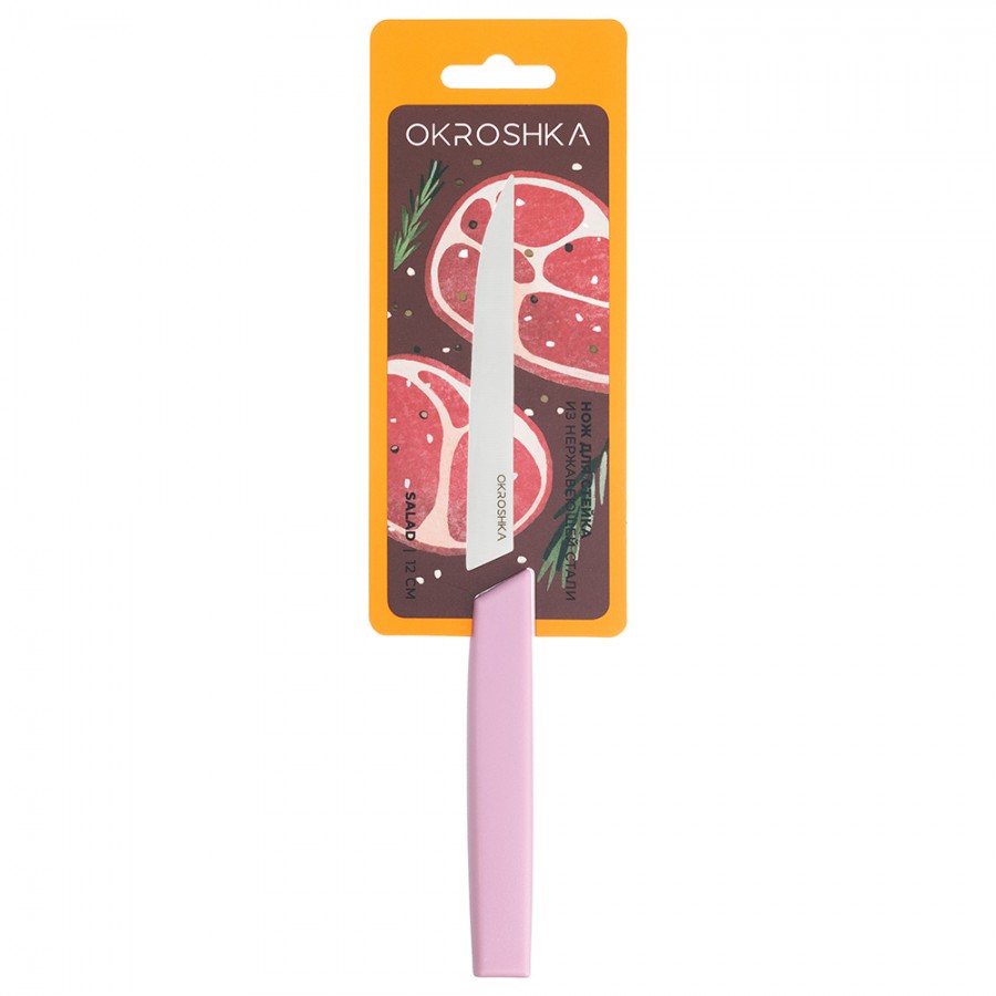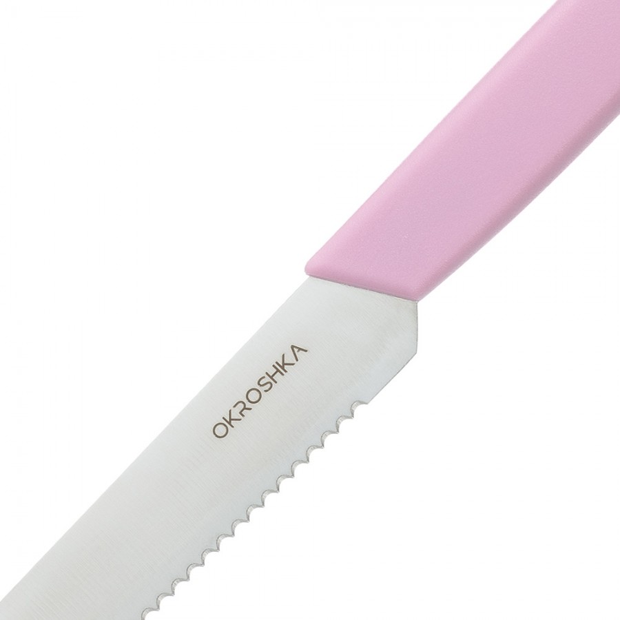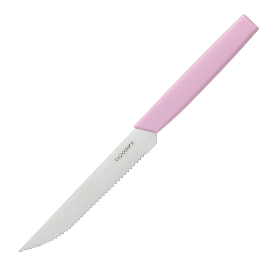 Нож для стейка OKROSHKA САЛАТ, лезвие 12 см, с серрейторной заточкой, розовая ручка
