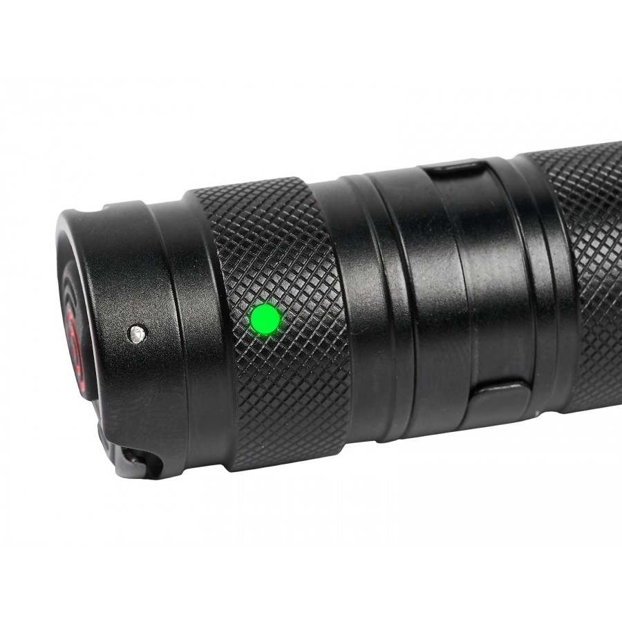 - Индикатор заряда. Фонарь оснащен индикатором заряда аккумулятора, чтобы вы всегда могли понять сколько времени работы примерно у Вас, осталось: