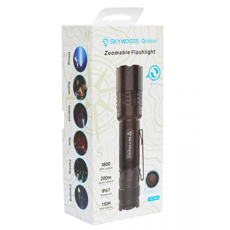 Ручной фонарь SKYWOODS TACTIC 1800 с зум-фокусировкой - идеальный помощник, как в повседневных делах, так и в экстремальных условиях или тактических действиях.